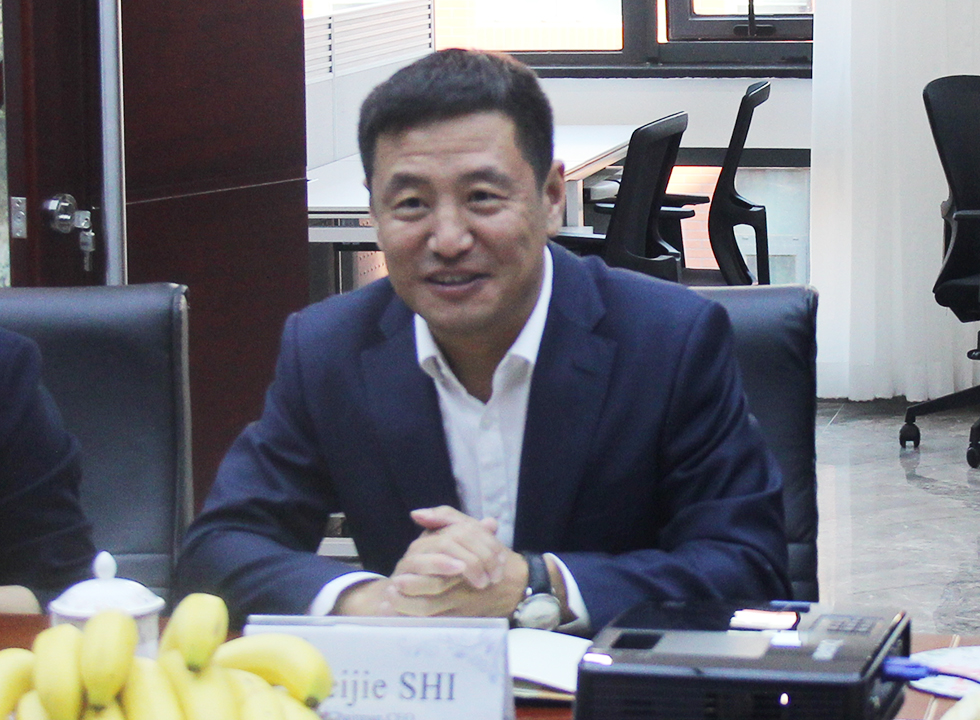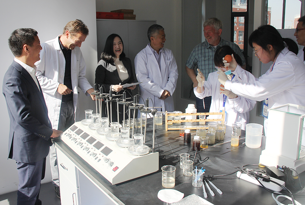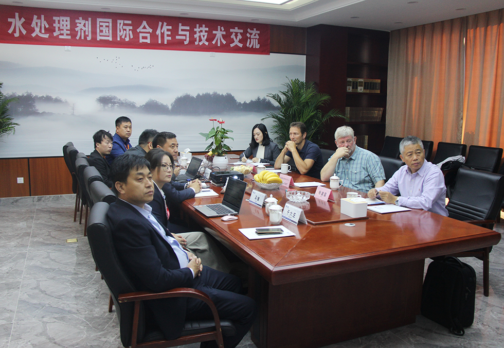 在交流會(huì)上,石偉杰董事長(zhǎng)首先向德國(guó)萊芬神喜公司考察團(tuán)的到來(lái)表示熱烈的歡迎,并介紹了公司各部門(mén)的負(fù)責(zé)人。石偉杰董事長(zhǎng)結(jié)合當(dāng)前中國(guó)水處理產(chǎn)業(yè)政策和市場(chǎng)發(fā)展情況,從產(chǎn)品領(lǐng)域、原料采購(gòu)、國(guó)際市場(chǎng)開(kāi)發(fā)和新產(chǎn)品研發(fā)等諸多方面提出了合作思考與建議,并取得了德方團(tuán)隊(duì)的高度贊同。