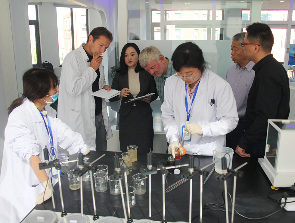 技術(shù)總監(jiān)周繼柱從公司的專(zhuān)利產(chǎn)品、核心競(jìng)爭(zhēng)力、頂級(jí)專(zhuān)家顧問(wèn)團(tuán)隊(duì)、所獲獎(jiǎng)項(xiàng)等方面做了詳細(xì)匯報(bào)。德國(guó)萊芬神喜公司總工Dr Palitzsch聽(tīng)后針對(duì)藥劑產(chǎn)品和水處理工藝提出了一些代表性的問(wèn)題與周總進(jìn)行了深入探討。 ![]()